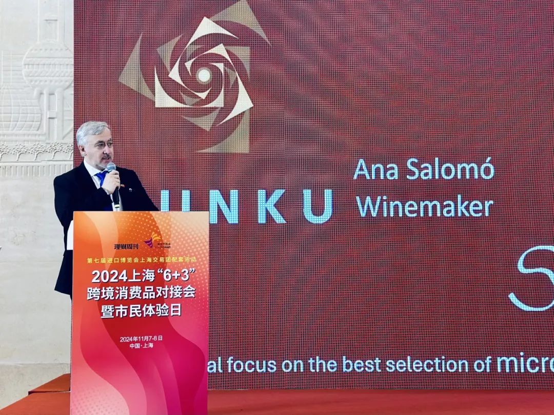 11月8日,第七届中国国际进口博览会上海交易团配套活动——2024上海“6+3”跨境消费品对接会暨市民体验日的系列活动,“丝路云品”国际葡萄酒对接会2024在上海世贸商城成功举办。本次活动邀请到了上海市商务委员会电子商务处副处长蒋静、智利共和国驻上海总领事馆总领事龚萨罗·费盖劳尔及领事代办埃尔弗里达·卡斯蒂略等嘉宾,以及本来生活、葡轩红酒、购酒网、西班牙小红帽无醇葡萄酒、上海灵惠酒业、上海巴丹国际贸易等国内外葡萄酒品牌、经销渠道商、WSET国际品酒师等共同参与。